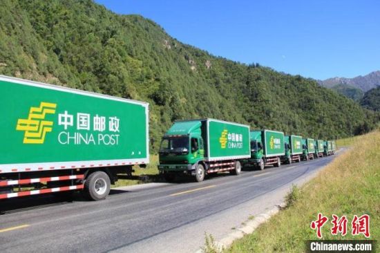 图为青海邮政货运车队在路途中行驶。 青海邮政供图