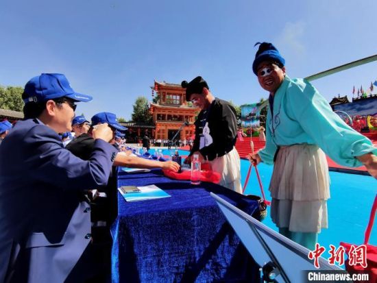资料图为青稞酒文化旅游节开幕现场,观众品尝青稞酒。 祁增蓓 摄
