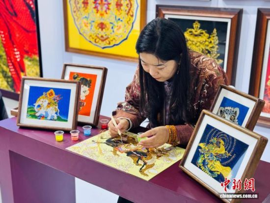 图为掐丝唐卡技艺现场展演。孙睿 摄