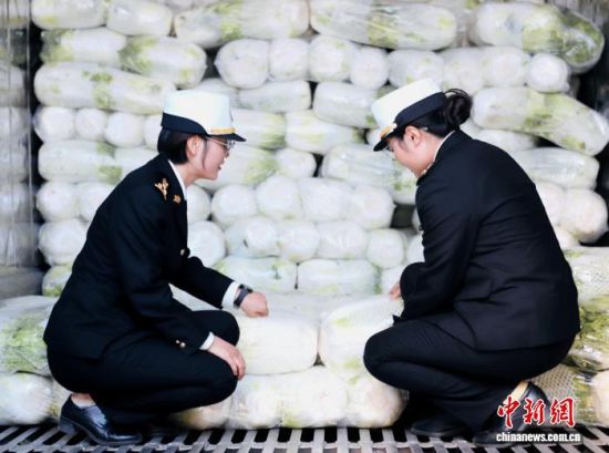 资料图为海关工作人员对出口冷凉蔬菜进行检查。西宁海关 供图