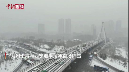 2月8日,青海北部受短波槽过境,南部低涡切变影响,多地迎来降雪天气,省会西宁迎兔年首场降雪,雪花簌簌飘落,整个城市银装素裹,被皑皑白雪装扮得格外美丽。(祁增蓓 制作 刘鹏)