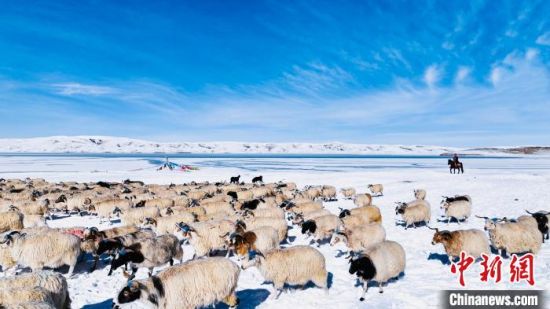 图为羊群在雪地里觅食。 李友崇 摄