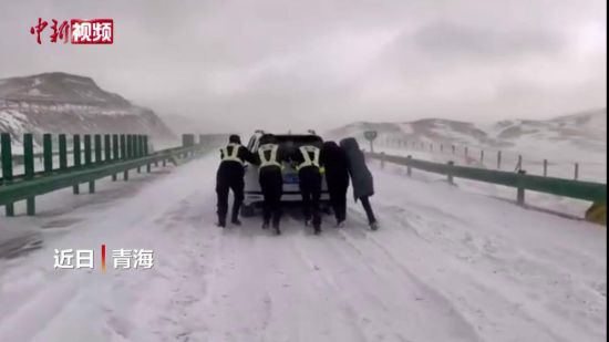 青海玛多县:降雪致多车滞留 民警抗雪保畅