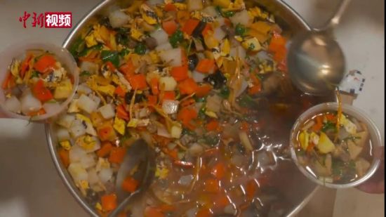 【解说】自开始实施做饭送饭的想法,赵贵良一家人坚持自费购买所有的食材。从开始送饭到现在,赵贵良的做法得到了身边家人邻居的认可和帮助,有越来越多的人开始参与到做饭这件事中来。在大家伙的共同努力下,现在每日能够保障上百人的餐食。