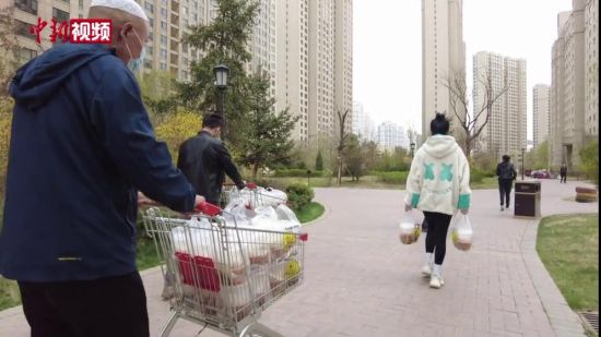 【解说】4月恰逢穆斯林斋月,通常在青海每一年的开斋节到来时,回族同胞会以茶饭宴会待客,邻里之间相互馈赠节日食品,以庆祝盛大节日。赵贵良坦言,由于此次西宁疫情原因,家中无法再招待客人,于是自己就换了种方式,将这些防疫人员视作自己的“客人”,在他们忙于防疫工作尚无法回家的情况下,只要能够吃上一口来自“家”的热饭,他就能心满意足。