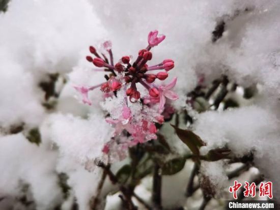 图为西宁市植物园内花瓣被积雪覆盖。 李文华 摄