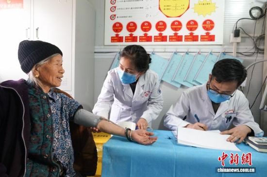 资料图为青海省海东市基层医护人员为民众测量血压。马铭言 摄