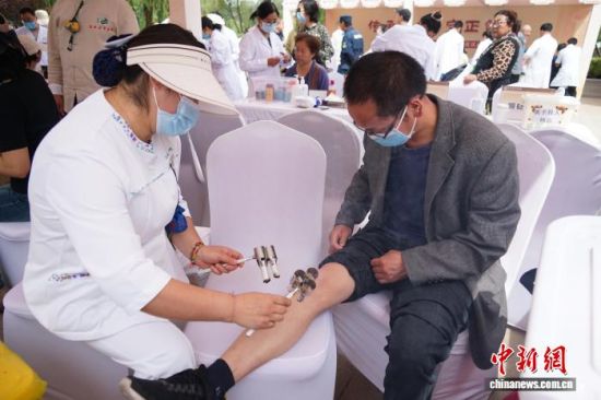 图为西宁市民体验中医热敏灸。 马铭言 摄