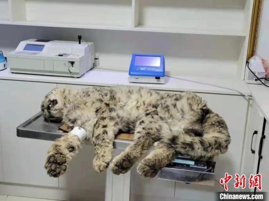图为受伤的雪豹等待救治。 张丹丹 摄