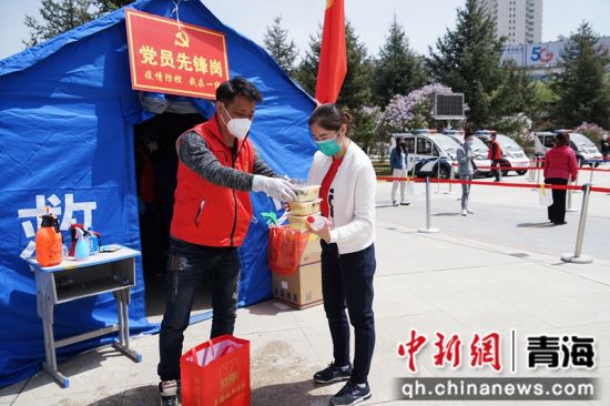 中新网青海新闻4月21日电(祁增蓓)“我每天都会带孩子来这里做核酸(检测),感觉这些‘大白’特别辛苦,中午吃的都是快餐,也回不了家,就想着做些凉面,青海人都爱吃,也算是家的味道吧。”21日,西宁市居民邹爱玲带着自己的外孙女,提着自己做的30份凉面来到中心广场核酸采样点。
