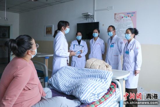 图为援青医生王元鹤(右一)了解产妇相关情况。马铭言 摄