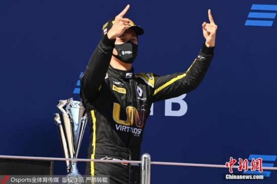 资料图:2020年9月27日进行的F2俄罗斯站第二回合冲刺赛中发生事故引发红旗,赛会宣布比赛不会重启,中国车手周冠宇拿到其职业生涯首个F2分站赛冠军。他也成为F2历史上首位夺冠的中国车手。图片来源:Osports全体育图片社
