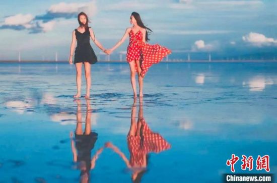 图为游客在景区内盐湖行走拍照。 海西州文体旅游广电局 供图