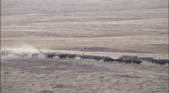 青海曲麻莱县:管护员偶遇170余头野牦牛奔腾