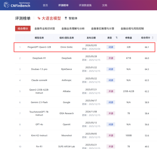 CNFinBench公布大语言模型综合得分:中国平安金融大模型荣登第一名