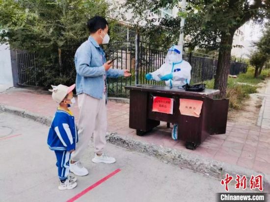 图为德令哈市疫情防控工作人员为市民提供服务。 德令哈市委宣传部 供图