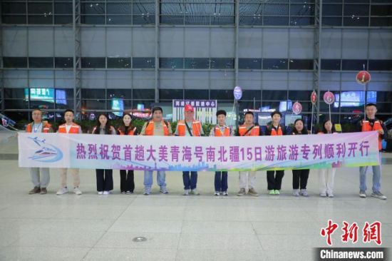 中新网西宁6月3日电(祁增蓓 周悦翔 尤东方)记者3日从中国铁路青藏集团有限公司(以下简称:“青藏集团公司”)获悉,昨日23时07分,该公司今年开行的首趟新疆方向旅游专列——Y359次畅游新疆旅游列车从西宁站驶出。