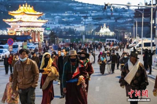 3月3日,来到青海塔尔寺观赏酥油花展的游客。 马铭言 摄