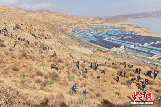 中新网青海黄南4月3日电 (祁绣娟)初春的青海省黄南藏族自治州尖扎县马康公路幸福湾,500余名干部群众、宗教教职人员手持铁锹,将油松、山杏等乡土树苗栽入浅山干旱地。4月3日,尖扎县2026年国土绿化暨全民义务植树活动启动,1.6万余株苗木扎根黄河岸线,为生态屏障再添新绿。