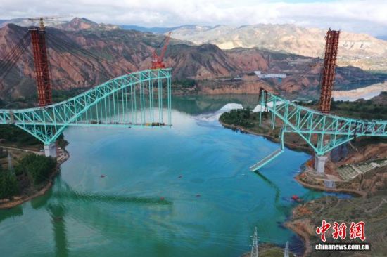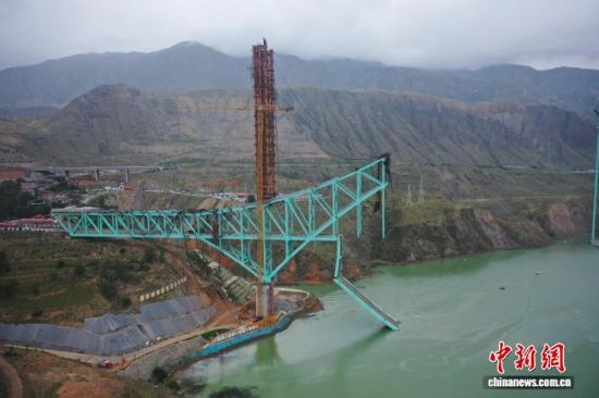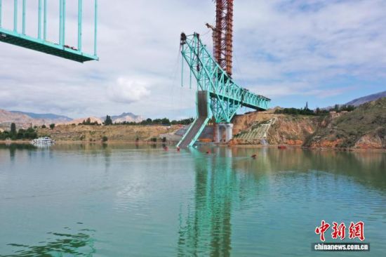 2025年8月22日3时许,西成铁路青海段尖扎黄河特大桥发生施工绳索断裂事故。图为尖扎黄河特大桥。(无人机照片) 张忠苹摄