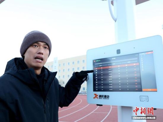 图为海西州高级中学援青校长张于东介绍智能运动场相关设备。马铭言 摄