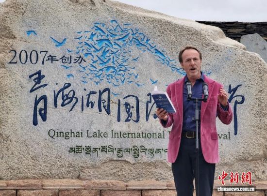 资料图为2023年青海湖诗歌节活动现场,来自澳大利亚的诗人马克·特雷尼克(Mark Tredinnick)获得诗歌节最高奖项。祁增蓓摄
