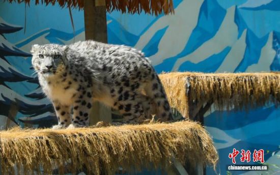 资料图为2025年8月11日,网红雪豹“凌小蛰”在西宁野生动物园雪豹馆内运动。 马铭言摄