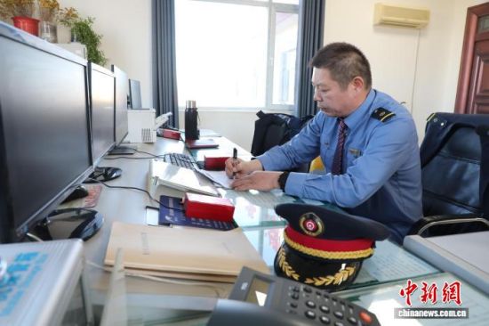 图为中国铁路青藏集团公司西宁车务段青海湖站车站值班员赵磊签收列车调度命令。 马铭言摄