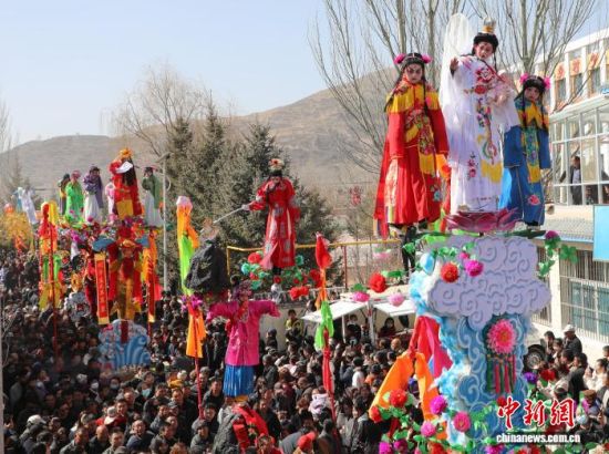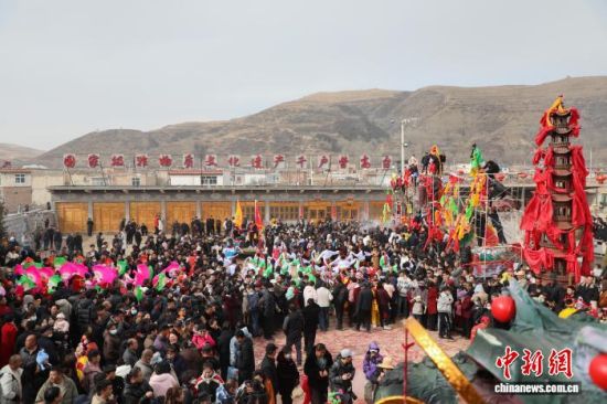 3月1日,青海省西宁市湟中区拦隆口镇千户营村上演“空中戏剧”高台。 马铭言 摄