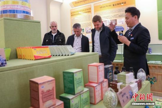 图为代表团一行了解青海藏医药。 马铭言 摄