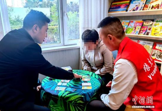 资料图为社区志愿者与残疾人(右二)进行沟通交流。李隽 摄